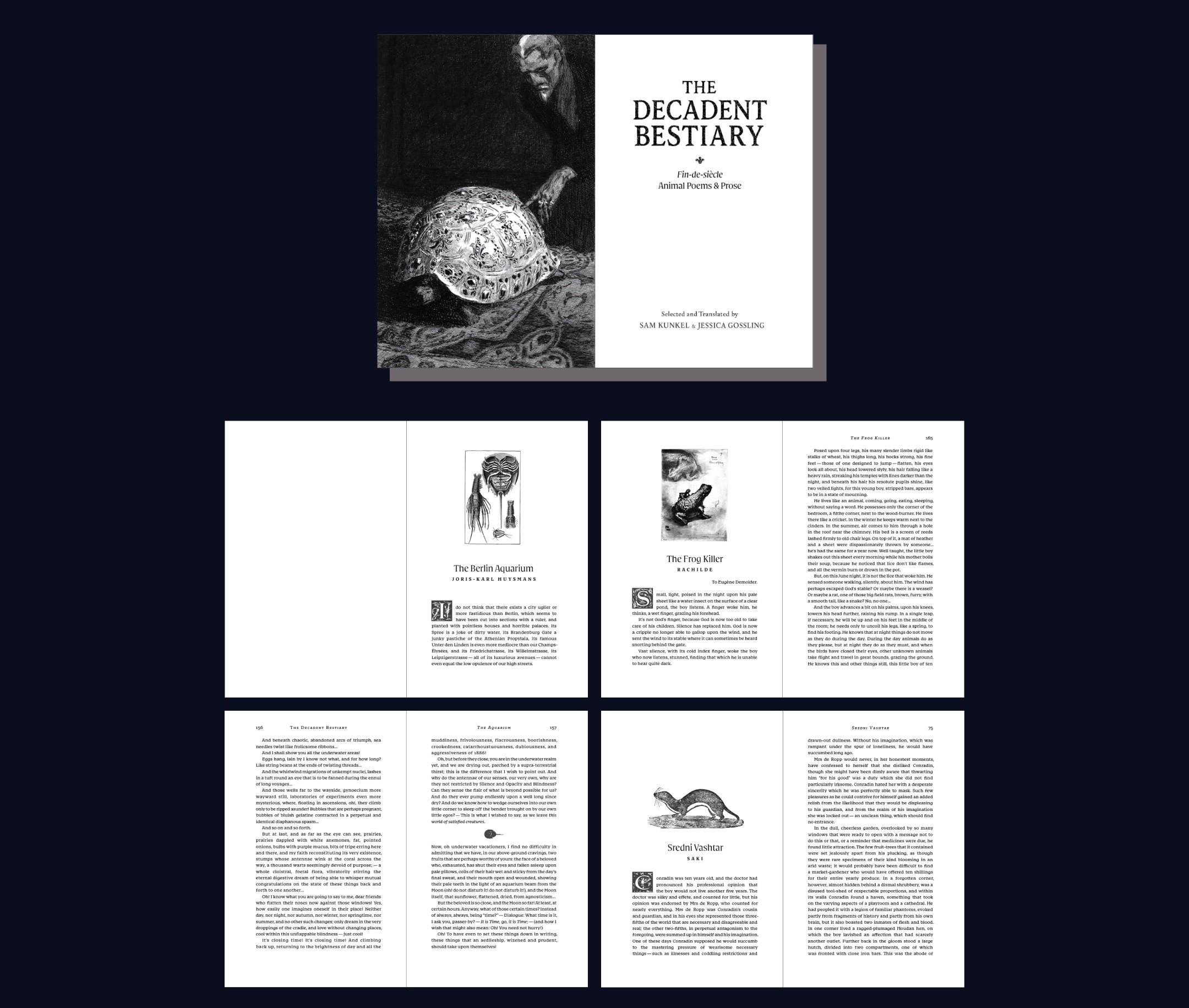 An original, sumptuously illustrated collection of fin-de siècle animal stories and poems, selected, translated, and introduced by Jessica Gossling and Sam Kunkel. Bringing together works by forty writers including Michael Field, Remy de Gourmont, Lafcadio Hearn, J.-K. Huysmans, Rachilde, and Eric Count Stenbock, this timely anthology explores the inexorable connection between human and animal, from the lion to the ant.